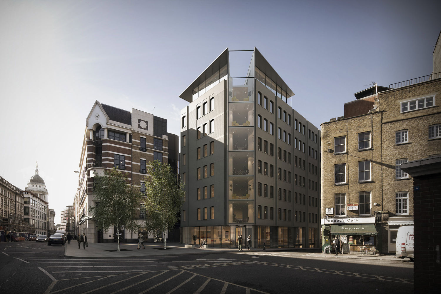 The design took into consideration local context, both old and new, with the site located in St Paul's height constraint area, a conservation area, and also near several new large-scale developments including the Farringdon Crossrail site.