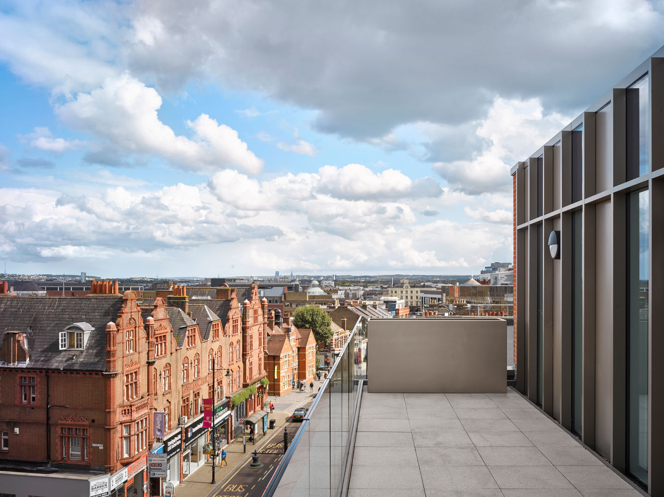 On the prominent corner, which is a sort-of gateway between the hub-bub of Wimbledon Town Centre and the smarter and quieter Conservation Area next door we’ve overlaid a ‘Conservation Area friendly’ façade – all red brick and green ceramic – like a classic Victorian Corner Pub.