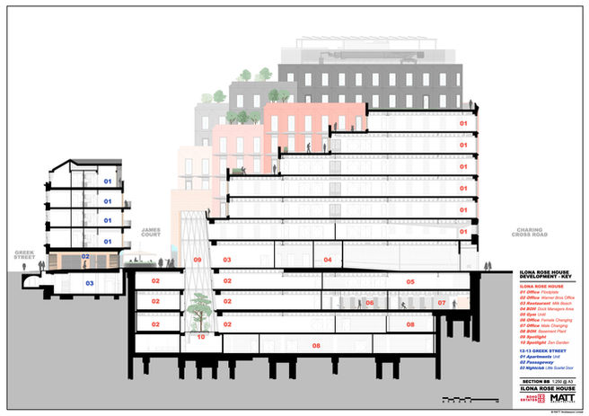 More than a sixth of the (nearly) 1-acre site is given over to public spaces – which are lined with restaurants, cafes, shops and a nightclub to create a lively and generous new destination within Soho.